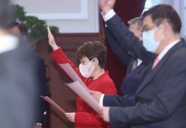 20日,臺灣新任駐美代表蕭美琴宣誓就職。穿著(zhù)一身大紅外套,她顯得頗有些喜氣洋洋。