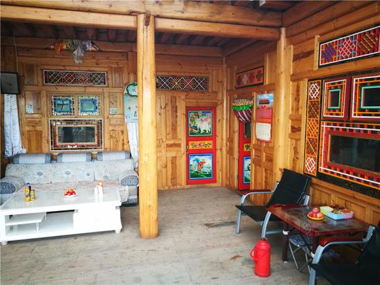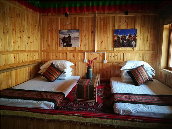 走進(jìn)安果村村民貢保杰布的家中,記者看到了非常干凈的藏式風(fēng)格民宿包間。貢保杰布今年50歲,妻子貢去乎吉與他同齡,有兩個(gè)兒子:貢保熱旦、貢保杰,4人都在家務(wù)農。他家中共有耕地8畝,草場(chǎng)面積350畝,家中有23頭編雌牛。2018年,貢保杰布將自己的庭院打造成鄉村民宿,在旅游旺季,按照每間客房300元的收費標準,一年接待游客收入達到5000元左右。